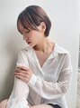 大人可愛いショート。耳掛けしても顔周りにサイドバングを作ることで小顔効果抜群の似合わせショート。透明感と艶のあるカラー。