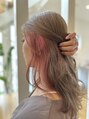 ★ミルクベージュ×ピンクイヤリングカラー★透明感のあるハイトーンカラーにピンクを入れて可愛さ抜群のスタイルです!ワンポイントなので派手になりすぎずオススメのカラーになってます![カラー/イヤリングカラー/カラー/インナーカラー/リタッチカラー]