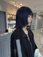 ブリーチ2回ベースをネイビーブルーでトーンダウン♪カットは顔周りレイヤーでナチュラルウルフに○仕上げはforオイルです!