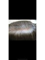 全体に細く細かいハイライトを入れ、その上からベージュ系の色を入れております。当日の染め上がりではハイライトは目立っておりませんが、色が褪色してくると共にハイライトが浮き出て髪により立体感を与えてくれます。