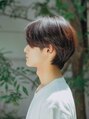 えりあしを刈り上げずにセンターパートでカットしトップの角をなくすようにレイヤーをれました。マッシュスタイルでもいける2wayスタイル。刈り上げをしない分、ネープをしっかり軽くしタイトになるようにしました。