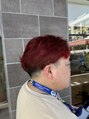 癖をいかしながらカットしました。カラーは元の髪色が明るかったのでワンカラーでここまで赤色が発色してくれましたが、黒髪からだとブリーチした方がきれいに発色すると思います。