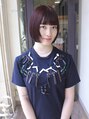 - ボブ/ミニボブ/ぱっつんボブ/ショートボブ/赤髪/ボルドーカラー/ブリーチなし/ブリーチなしカラー〕