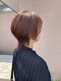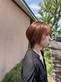 立体感まるみボブカット×オレンジブラウンブリーチなしカラー