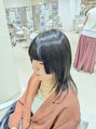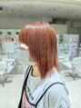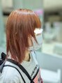 夏らしいオレンジカラーです。パッツン前髪に、サイドシャギーです。丸顔さんでも、似合います。