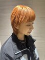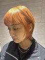 ブリーチ1回後ペールオレンジカラーをのせてます^_^ベリーショートから伸ばし中なのと顔まわりの癖を抑えるためにバングは重めにボブに向けて伸ばしやすいようにカット。オレンジシャンプーとアルティールかリペアリティシリーズがホームケアオススメです。