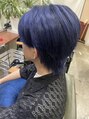 ルフレカラーのラピスを使用。カットは襟足を残し過ぎないウルフスタイル。センターパートで分けて、セットも簡単!色落ちしてくると、シルバー系で落ちてくるので、色の変化も楽しめて、少し暗めに染めてるので色の長持ち!長持ちと、2色楽しめて嬉しい★