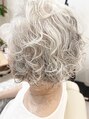 地毛の白い髪をそのまま活かし、パーマでボリュームを出した華やかなボブヘア。白い髪の透明感が、柔らかな雰囲気に。少しウェットにし、スタイリング剤を揉み込むだけのお手入れで、こんなにもオシャレなパーマボブに *