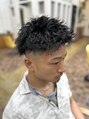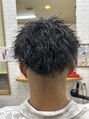 ブロックフェードにスパイキーショートをベースでツイストスパイラルをかけました。直毛のお客様なので、セットに苦戦するって事だったのでフロントも上げも出来るし、下げもできる様にしました。グリースでパタパタつけるのみでカッコいいです。く
