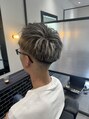 メッシュを最大限多くしたフルメッシュです!ベースはフェード×ショートアップバングスタイル!男らしさ抜群で夏にピッタリのスタイルです!紫シャンプーで色をキープできるので染め直ししなくてよいので、ケアも楽ちんです!