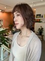 肩上のボブスタイルです。ウェーブはクセを活かしてムースを馴染ませて揉み込むように乾かしてスタイリングしています。前髪を短めにすることで抜け感のあるヘアスタイルに仕上げています◎