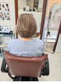 ブリーチをせずに、お客様の自然な白髪の状態を明るい色味を入れて、メッシュを入れたかのように仕上げています