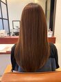 重さを残したローレイヤーベースに、顔まわりは柔らかく動くようカット。ピンクブラウンでツヤ感と透明感を引き出し、大人可愛い印象に◎シアーバングで抜け感をプラスし、ストレートでも巻いても決まる万能ロングスタイル