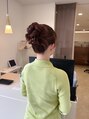 大人可愛いツインお団子 結婚式 お呼ばれヘア 二次会ドレス