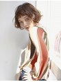 ふんわりと動きが出やすいショートボブです短めの前髪で目元を大きく明るく見せますカラーは透け感のあるクリアブラウンで艶感が出るようにしています