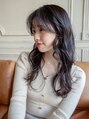 顔回りに動きが出るように少しレイヤーを入れてるロングヘアスタイルになります。前髪を薄バングにすることで全体的に軽さのある印象に。ヘアカラーはダークカラーで艶感と落ち着いた雰囲気がでて大人っぽいイメージに☆