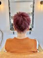 白髪を活かしてピンクバイオレットをオン*白髪の割合が多いほど綺麗に染まりますレディースのバズカットとの相性も抜群ですモーヴピンクなども合います