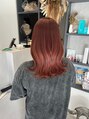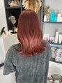 柔らかい印象を与えるラズベリーピンクカラーが魅力のミディアムスタイル。毛先にほんのりと動きをつけることで、ナチュラルな抜け感と女性らしい華やかさを演出。ブリーチベースに色を重ねることで、深みのある発色と透明感を両立しています。