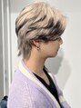 - センターパートホワイトブロンドケアブリーチウルフカットメンズ