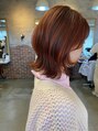 肩に着く長さのウルフは顔まわりの巻き方でイメージがガラリと変わります。ビタミンカラーのオレンジを添えて。