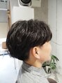 全体にスタイリング剤をつけて振り下ろすだけで形が決まるニュアンスパーマ。後ろに流れるのでこれからの暑い時期にも扱いやすくオススメなメンズパーマスタイルです♪