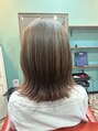 ハイライトを細目に入れて筋感出して立体的に見えるようにしてます!ベースも明るめのベージュベースにしてハイライトとの馴染みもよくしています!ハイライトをコントラスト付けすぎるとギャルっぽくなるのでナチュラルな雰囲気が好きな方にはオススメです!