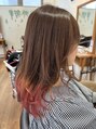 まだまだ流行りの裾カラー。今回はオレンジピンクにしてみまささた!ワンブリーチからのカラーです!ちょっぴり遊び心で楽しんでくださいね!