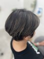 ベースの色は地毛に近い透明感のあるカラーにして、コントラストを効かせたハイライトデザインをいれたショートヘアです。