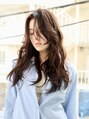 かきあげ前髪/外国人風ウェーブ/ウェットヘア/暗髪/たまプラーザ