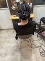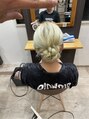 編み込みを活かした上品なまとめ髪スタイル。どの角度から見ても美しく、特別な日の装いを華やかに引き立てます
