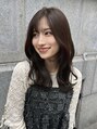 長さは鎖骨と胸の間のセミディヘア。くびれるスタイリングがしやすいように入れたレイヤーがポイント。カラーは艶感と深みのあるグレーべージュで上品で落ち着いた雰囲気に。