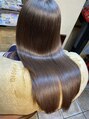 髪の中間から毛先のダメージを整えながら施術する縮毛矯正です