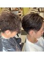 襟足をタイトめにしてシルエットが綺麗になるようにカットしてます!サイドは耳半分くらいの長さ前髪は口先くらいにして前下りシルエットにしています!