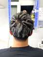 ツーブロックのアップバンクにホワイトメッシュを入れたスタイルになります。耳周りとネープをスッキリ刈り上げてるので爽やかな感じになります。刈り上げは9ミリ~6ミリになります。
