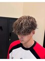 波巻きパーマとハイライトカラーブラウンベースのハイライトもカッコいいです波巻きの動きがさらにカッコよさを引き出す