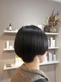 前髪と頬にぷつっとしたラインを残して、顔まわりにデザインをプラスしたショートです