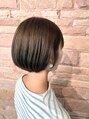 コンパクトなショートボブ。適度な深みと透明感はオリーブカラーのなせる技。年齢を重ねてくるとアッシュ系はくすみがち、、そんな時はオリーブカラーがオススメ!