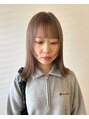 ぷつっとしたカットに顔周りのレイヤーがポイントです。ブリーチベースですが、明るすぎず透明感のあるカラーが可愛いです!