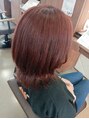 大人可愛いデザインが得意です。ミディアムウルフで女性らしいファッションからかっこいいパンツスタイルでも似合うヘアスタイルを作ります。