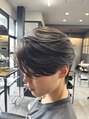 メンズカットです。2センチほど切らせていただき、前下がりのセンターパートに、させていただきました。元々毛流れがある方なので、サイドの流れもパーマなしできれいにに繋がる流れが出るようにさせていただきました