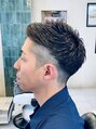 3ミリのツーブロックベースに短く合わせた上をアイロンパーマで扱いやすく整えたヘアスタイルです。ドライ後にグリースを馴染ませて毛流れを整えれば完成。大宮/メンズカット/メンズパーマ/さいたま新都心/鉄道博物館/北与野/与野/土呂/宮原