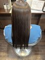 このスタイルは、ツヤのあるストレートロングヘアで、自然なブラウンカラーが特徴です。シンプルで上品な印象を与えます。