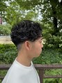 サイドとバックは短めに刈り上げて、バックは後頭部につなげてカットして、頭の形が綺麗に見えるように◯サイドは少しツーブロックで、全体に強めのカールのパーマを!ジェルを揉み込むだけで、セットも楽なのでオススメです!