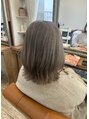 一度ブリーチをして、シルバーグレー系のお色味を重ねました!光の加減で見え方が変わる、透明感と柔らかさ抜群のカラーに仕上がりました♪動きのある外ハネスタイルとも相性◎です!!※髪質や状態、デザインによって仕上がりには個人差があります。