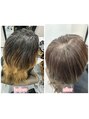 前回より半年空いてご来店。スパンが長い方なので白髪をしっかり染めずに細めハイライトで少し白髪を浮かして染めて馴染ませました。色がキレイに見えるので少し白髪が浮いても気になりずらい。伸びてきた時により気になりずらいデザインです。