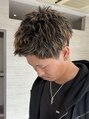 【気に入って頂いたスタイルはブックマークしてご提示ください】カット+メッシュカラーでイメチェン!多毛で扱いずらい髪を、刈り上げて前髪をあげるスタイルでスッキリとした印象に。金メッシュを入れることでスタイルに立体感をプラス。