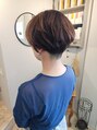 襟足をスッキリ刈り上げたショートヘア。後頭部の丸みが女性らしくハイライトで立体感を出しています!
