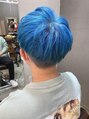 王道な前下がりマッシュスタイルになります。ノーセットでも決まります!カラーは3度ブリーチしてからアースカラー、スカイブルー系のお色で透明感を引き出しました、旬のカラーになります!スタイリング剤はナチュラル系ワックスがおすすめです。