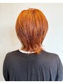 ブリーチなしのオレンジカラーに、ウルフレイヤー
