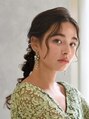トレンドの玉ねぎポニーは、ブライダルやパーティなどお呼ばれスタイルにもオススメ。全体をウェーブ巻きにしてから結ぶことで、よりエレガントな印象に。トップも髪を引き出して立体感を演出。